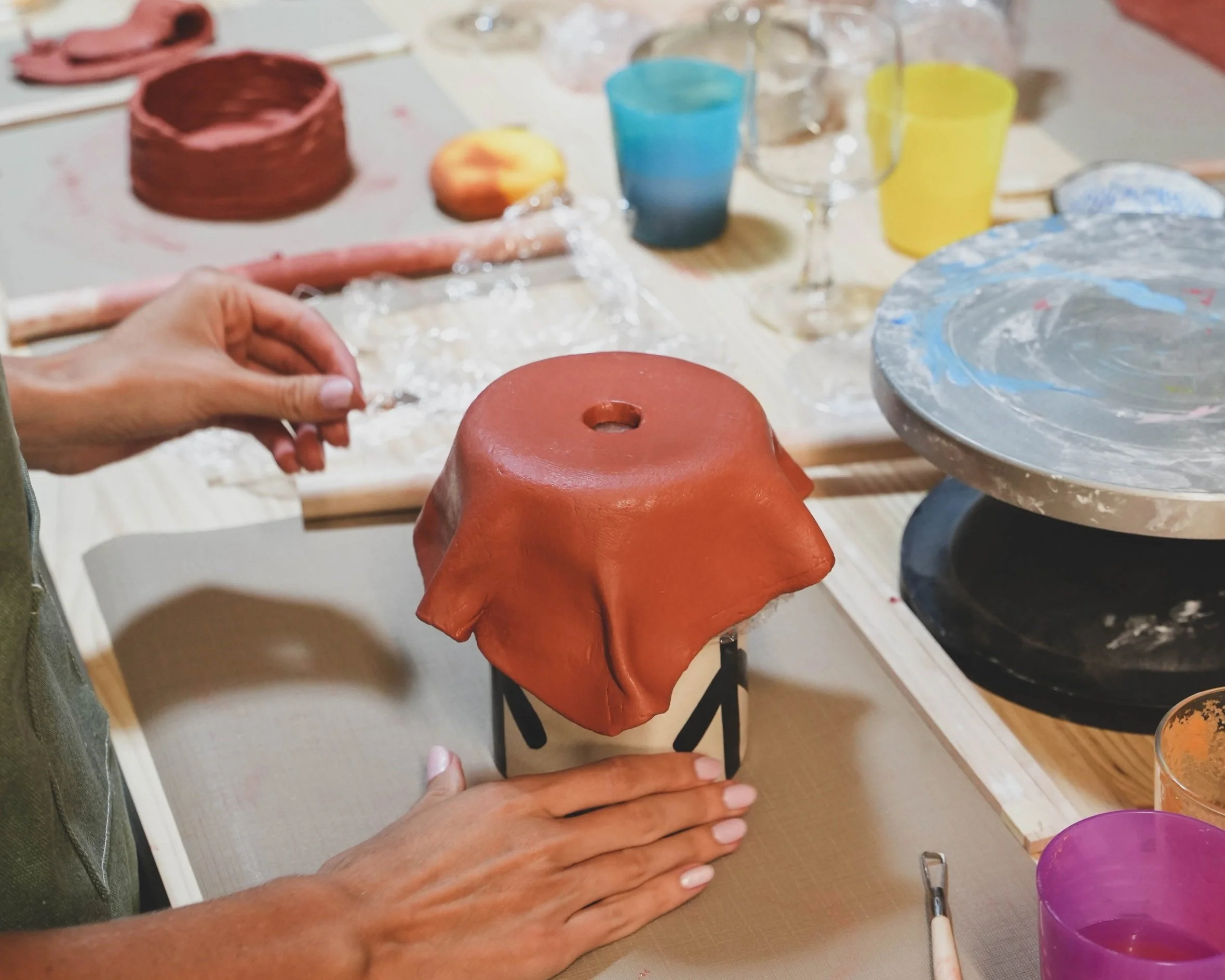 ¡Crea pequeñas piezas de cerámica para tu casa! Introducción al modelado de cerámica sin horno: primera sesión de modelado, segunda sesión de lijado y pintura. Aprende algo nuevo, relájate, desconécta y conversa. Todo acompañado de música, aperitivos gourmet, vino orgánico y cervezas.